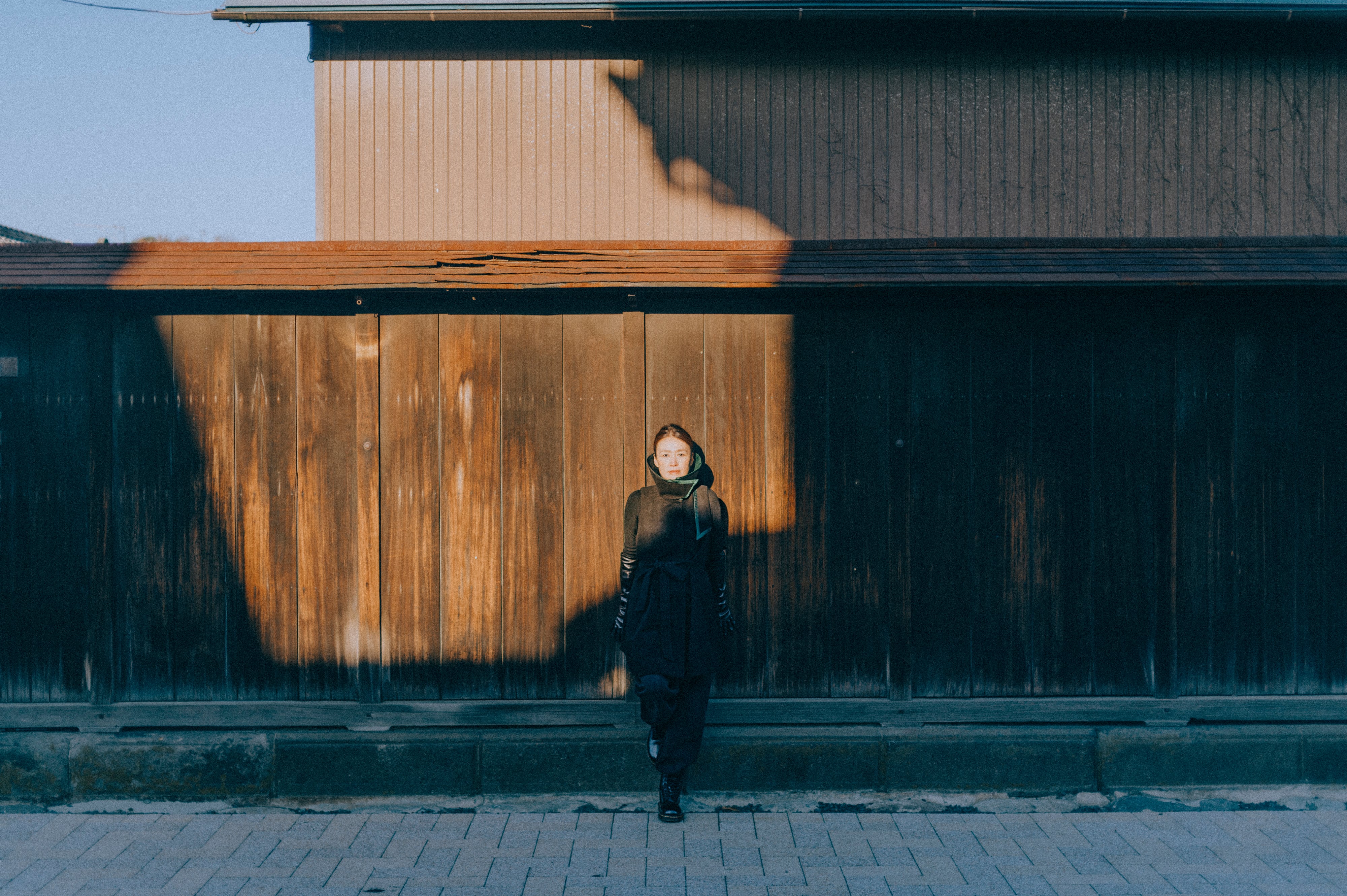 コットンとポリエステルのダブルフェイスの生地で、温かみのある黒と手触りを出している。
